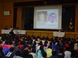 パネルディスカッション「歴史を語る」では、松石前校長先生をコーディネーター、3名の卒業生の方をパネリストとしてお招きし、千田小学校の歴史を話していただきました。