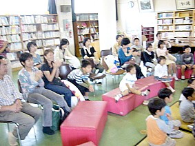 ボランティアグループ「おはなしバスケット」のみなさんによる絵本の読み聞かせです。感情豊かに話されるので、とても楽しく聞くことができました。絵本が好きになった子どもたちがきっといることでしょう。