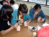 修学旅行の記念に、みんなで萩焼の湯のみに絵付けをしました。