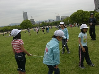 1年生を迎える会の後、平和公園を通って、中央公園に到着しました。
