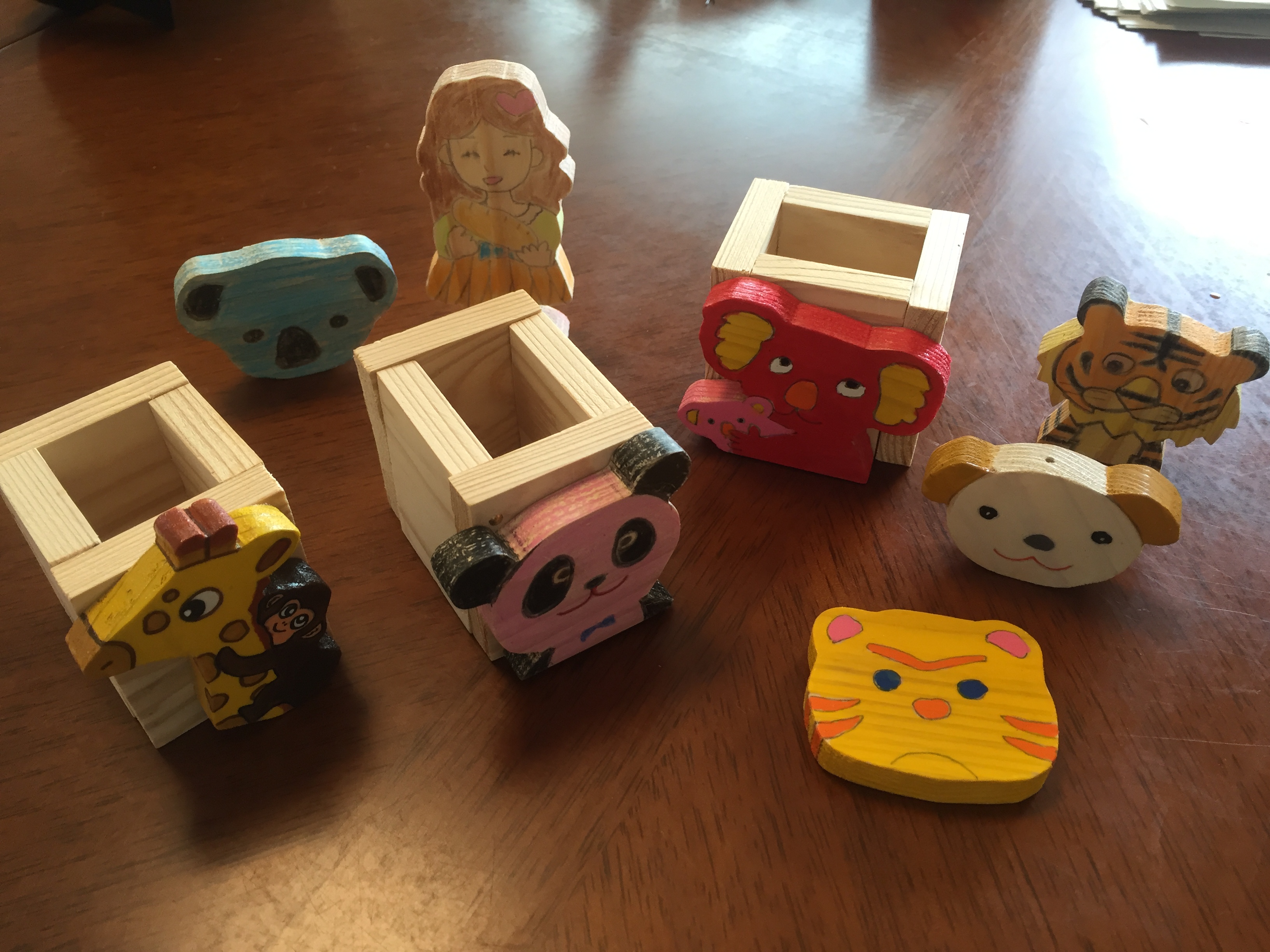 パンダハウスによる木工製作は、自分で色付けするかざりを付けた木の箱です。