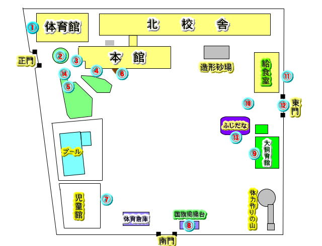 千田小学校には、たくさんの被爆樹木や被爆した石、記念碑が残されています