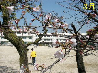 本館1階、職員室前の花壇には、四季折々の花が咲きます。また、校内にはさくらの木が6本あって、4月上旬にはきれいな花をつけます。